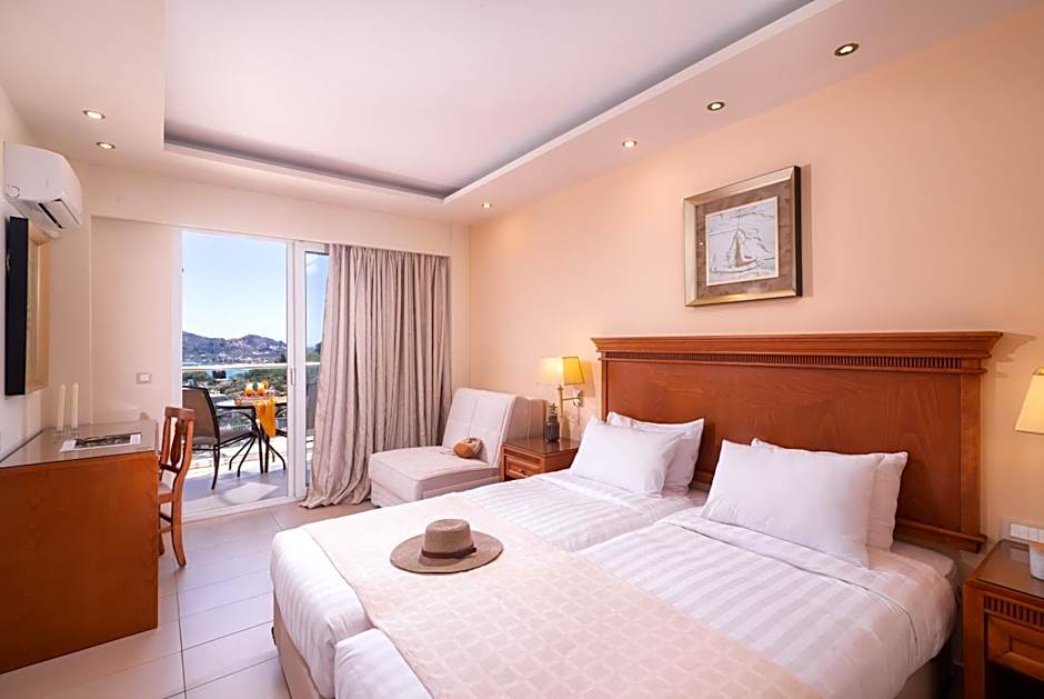 This air-conditioned room opens to a balcony with Ionian Sea view. Featuring classical décor, it offers: